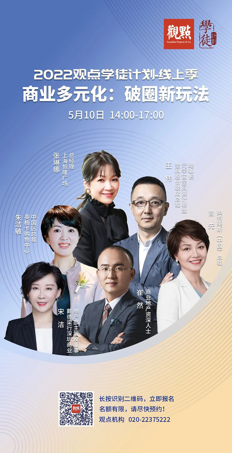 5月10日,由觀點機構主辦的“2022觀點學徒計劃-線上季”線上專題討論會成功舉辦,本期討論主題為“商業多元化:破圈新玩法”。奧特萊斯(中國)總裁受邀參加本次專題討論會,并作了以“一站式生活目的地——奧特萊斯思考及實踐”為主題的分享。
