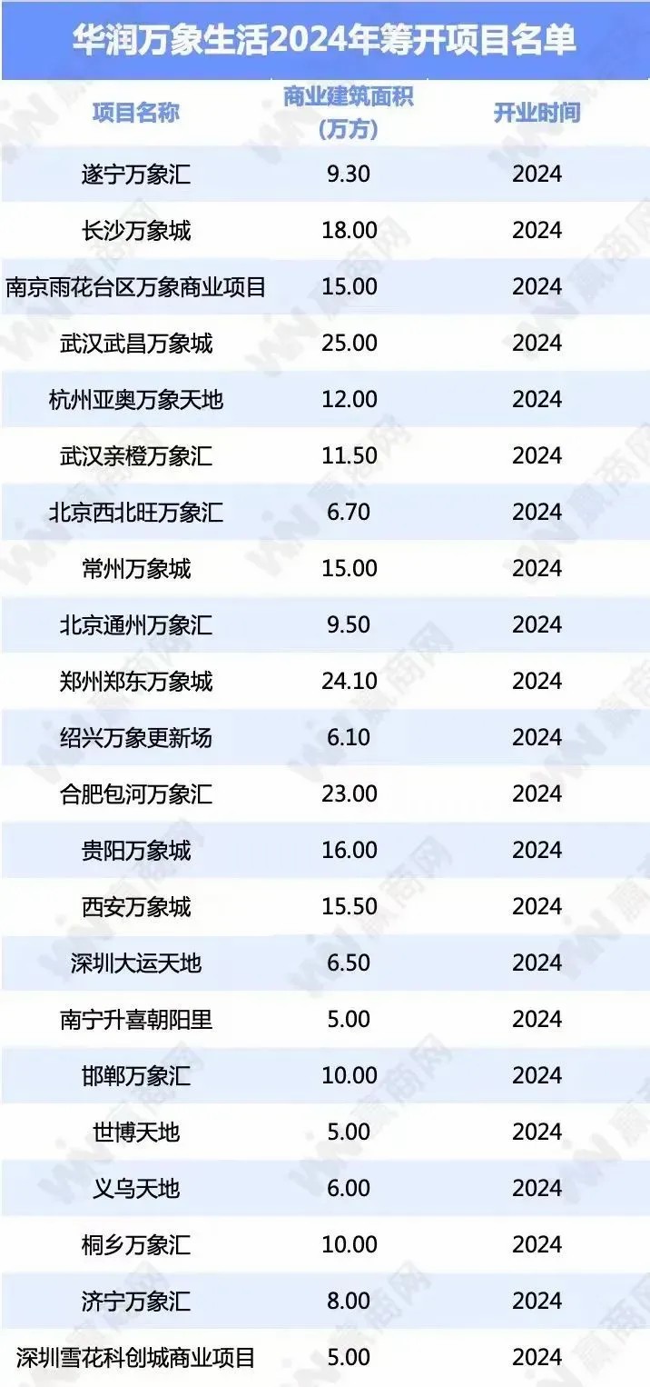 2023年華潤萬象生活以“萬象”系列為核心,在全國范圍內迅速拓展其商業帝國,成功開設13座全新購物中心。展望今年,華潤再啟新程,計劃推出22個引人注目的新項目,持續加速商業版圖的擴張步伐。
