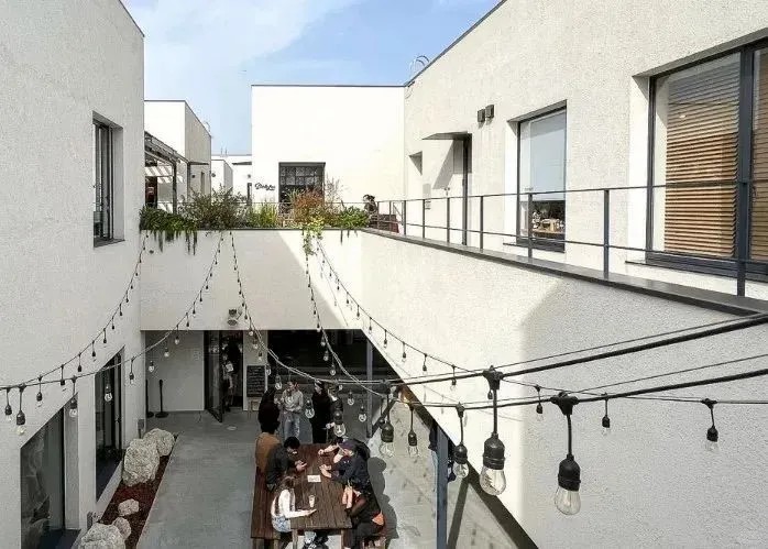 在這些“建筑盒子”內(nèi)部,各類店鋪如黑膠唱片店、復(fù)古書店、咖啡店、面包店以及餐廳酒吧等錯落有致,共同圍繞“品質(zhì)生活”這一主題展開,營造出一種令人心曠神怡的輕松氛圍。