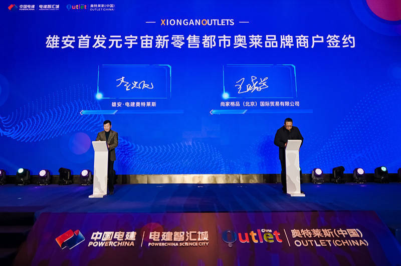活動現場,中國電建地產公司黨委副書記、董事、總經理,中電建河北雄安建設發展有限公司黨委副書記、總經理李端代表電建智匯城,與奧特萊斯(中國)進行簽約,宣布雄安首家元宇宙主題新零售商業雄安·電建奧特萊斯落定并正式啟動招商。數十家國際一線奢侈品牌、國際潮牌、國際運動品牌強勢入駐,揭開了首批入駐雄安?電建奧特萊斯的國際大牌面紗,奏響了2023年雄安商業蓬勃發展最強音。